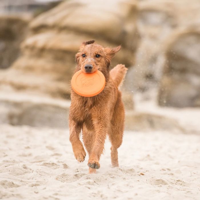 De Zisc is gemakkelijk op te rapen van vlakke oppervlakten en is zeer uitdagend vanwege het zweven en stuiteren. Bovendien blijft de Zisc drijven op het water en is hij vaatwasserbestendig waardoor hij gemakkelijk schoon te houden is. De Zogoflex Zisc is ook aan te raden voor pups, door het flexibele materiaal zullen de tanden niet beschadigen.